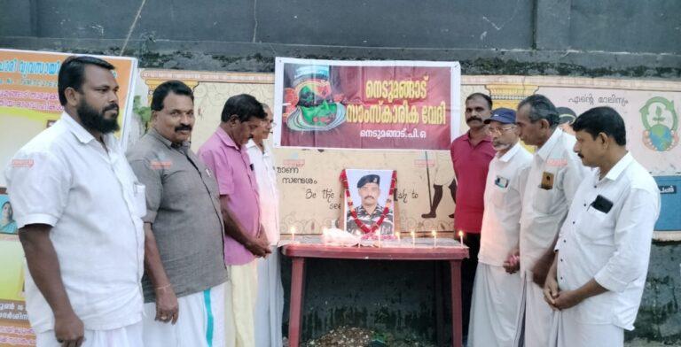 നെടുമങ്ങാട്: നെടുമങ്ങാട് സാംസ്കാരിക വേദിയുടെ ആഭിമുഖ്യത്തിൽകച്ചേരി നടയിൽഛത്തീസ്ഗഡ് മാവോയിസ്റ്റ് ആക്രമണത്തിൽ കൊല്ലപ്പെട്ടനന്ദിയോട് സ്വദേശിസൈനികൻവിഷ്ണുവിന്റെ ഛായചിത്രത്തിന് മുന്നിൽ ദീപം തെളിയിച്ചു,...