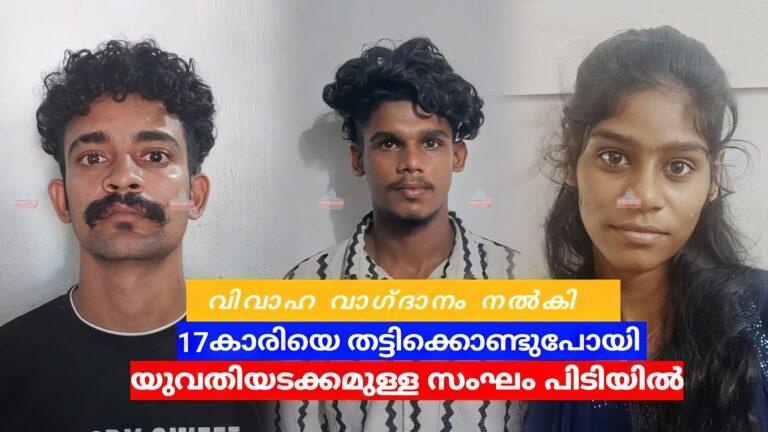 കഠിനംകുളം : വിവാഹ വാഗ്ദാനം നൽകി 17കാരിയെ തട്ടിക്കൊണ്ടുപോയ സംഭവത്തിൽ യുവതി അടക്കമുള്ള സംഘം പിടിയിൽ.ചേരമാൻ തുരുത്ത് കടയിൽ...