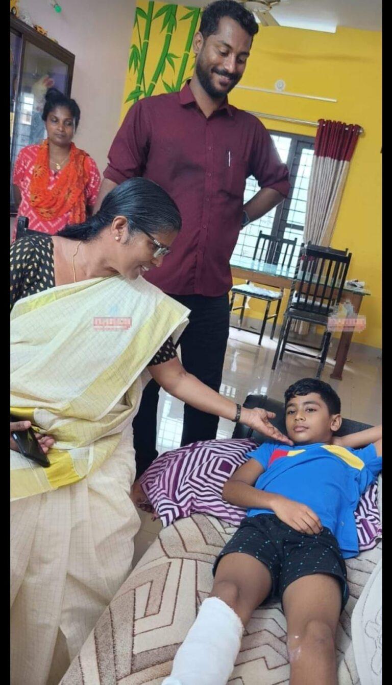 ചെളി കെട്ടു രൂപംകൊണ്ട റോഡിൽ ഓട്ടോമറിഞ്ഞു അപകടത്തിൽപ്പെട്ട വിദ്യാർത്ഥിയെ നഗരസഭ ചെയർപേഴ്സൺ സന്ദർശിച്ചു