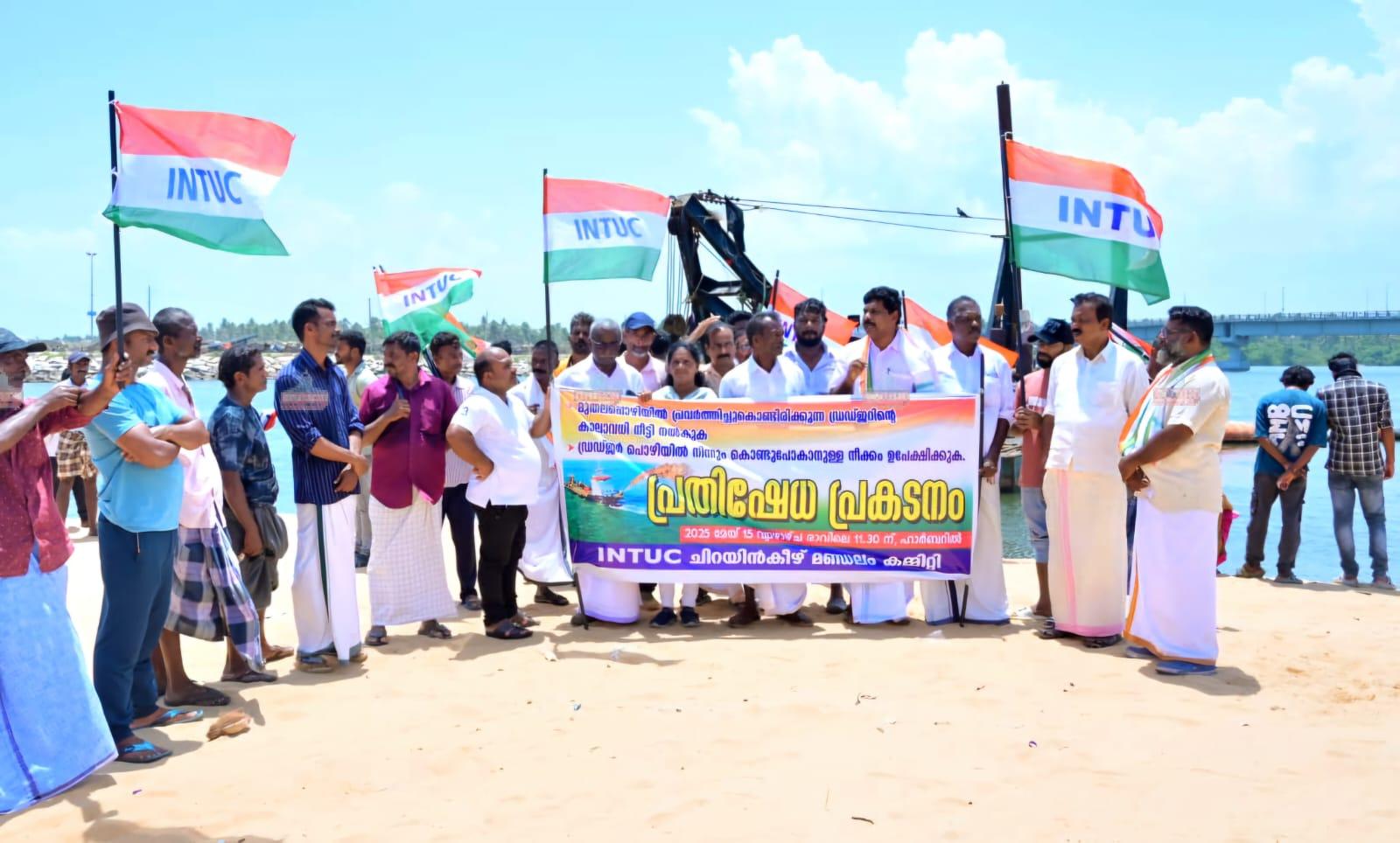 പെരുമാതുറ മുതലപ്പൊഴിയിൽ നിലവിൽ പരിമിതമായ നിലയിൽ പ്രവർത്തിച്ചു കൊണ്ടിരിക്കുന്ന ചെറിയ ട്രഡ്ജർ കരാർ കാലാവധി കഴിഞ്ഞതിന്റെ പേരിൽ അവിടെ നിന്നും നീക്കംചെയ്യാനുള്ള സർക്കാർ നീക്കത്തിനെതിരെ ഐ.എൻ.ടി.യു.സി ചിറയിൻകീഴ് മണ്ഡലം കമ്മിറ്റിയുടെ നേതൃത്വത്തിൽ മുതലപ്പൊഴി ഫിഷിങ്ങ് ഹാർബറിലേക്ക് കരിങ്കൊടി പ്രകടനവും, പ്രതിഷേധയോഗവും നടത്തി. പ്രതിഷേധക്കാർ കായൽ നീന്തിക്കയറി ട്രസ്ജറിൽ കരിങ്കൊടി കെട്ടുകയും ചെയ്തു. ഹാർബറിൽ നടന്ന പ്രതിഷേധ യോഗം ഡി.സി.സി ജനറൽ സെക്രട്ടറി അഡ്വ. എസ് കൃഷ്ണകുമാർ ഉദ്ഘാടനം ചെയ്തു. ട്രഡ്ജിങ്ങിനായി എത്തിച്ച ചന്ദ്രഗിരി ട്രഡ്ജർ അറ്റകുറ്റ പണികൾക്കായി ഒരു മാസമായി കരയിൽ വിശ്രമിക്കുന്ന സാഹചര്യത്തിൽ താല്ക്കാലികാശ്വാസം എന്ന നിലയിൽ മിതമായ രീതിയിലെങ്കിലും മണ്ണ് നീക്കം ചെയ്യുന്ന ട്രസ്ജർ കൊണ്ടു പോകാനുള്ള സർക്കാർ നീക്കം മത്സൃത്തൊഴിലാളികളോടുളള വെല്ലുവിളിയാണെന്നും, ട്രസ്ജിങ്ങ് നടപടികൾ പൂർണമായും നിലക്കുന്ന സാഹചര്യത്തിൽ യു.ഡി.എഫ് ആവശ്യപ്പെട്ട പ്രകാരം ഈ വിഷയത്തിൽ മുഖ്യമന്ത്രി അടിയന്തിരമായി ഇടപെട്ട് പ്രശ്ന പരിഹാരമുണ്ടാക്കാത്ത പക്ഷം അതിശക്തമായ സമരവുമായി മുന്നോട്ട് പോകുമെന്ന് അദ്ദേഹം പറഞ്ഞു
