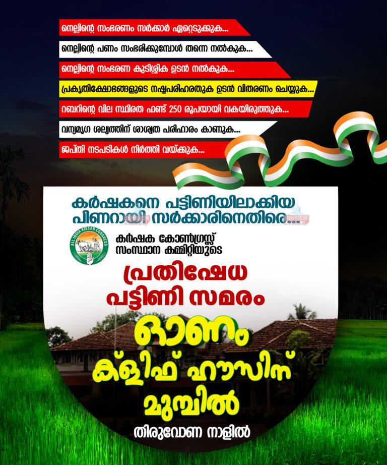 തിരുവനന്തപുരം : സംസ്ഥാന സർക്കാരിൻ്റെ കർഷക വിരുദ്ധ സമീപനം മൂലം വറുതിയിലായ കർഷകർ തിരുവോണ നാളിൽ മുഖ്യമന്ത്രിയുടെ വസതിയ്ക്കു്...