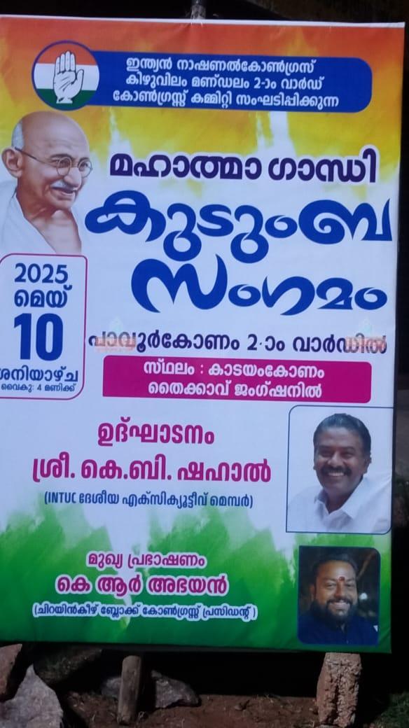 കിഴുവിലം രണ്ടാം വാർഡ് പ്രസിഡന്റ് രാജീവ് ആർ ശേഖറിന്റെ അധ്യക്ഷതയിൽ വാർഡു തല മഹാത്മാഗാന്ധി കുടുംബ സംഗമം രണ്ടാം...